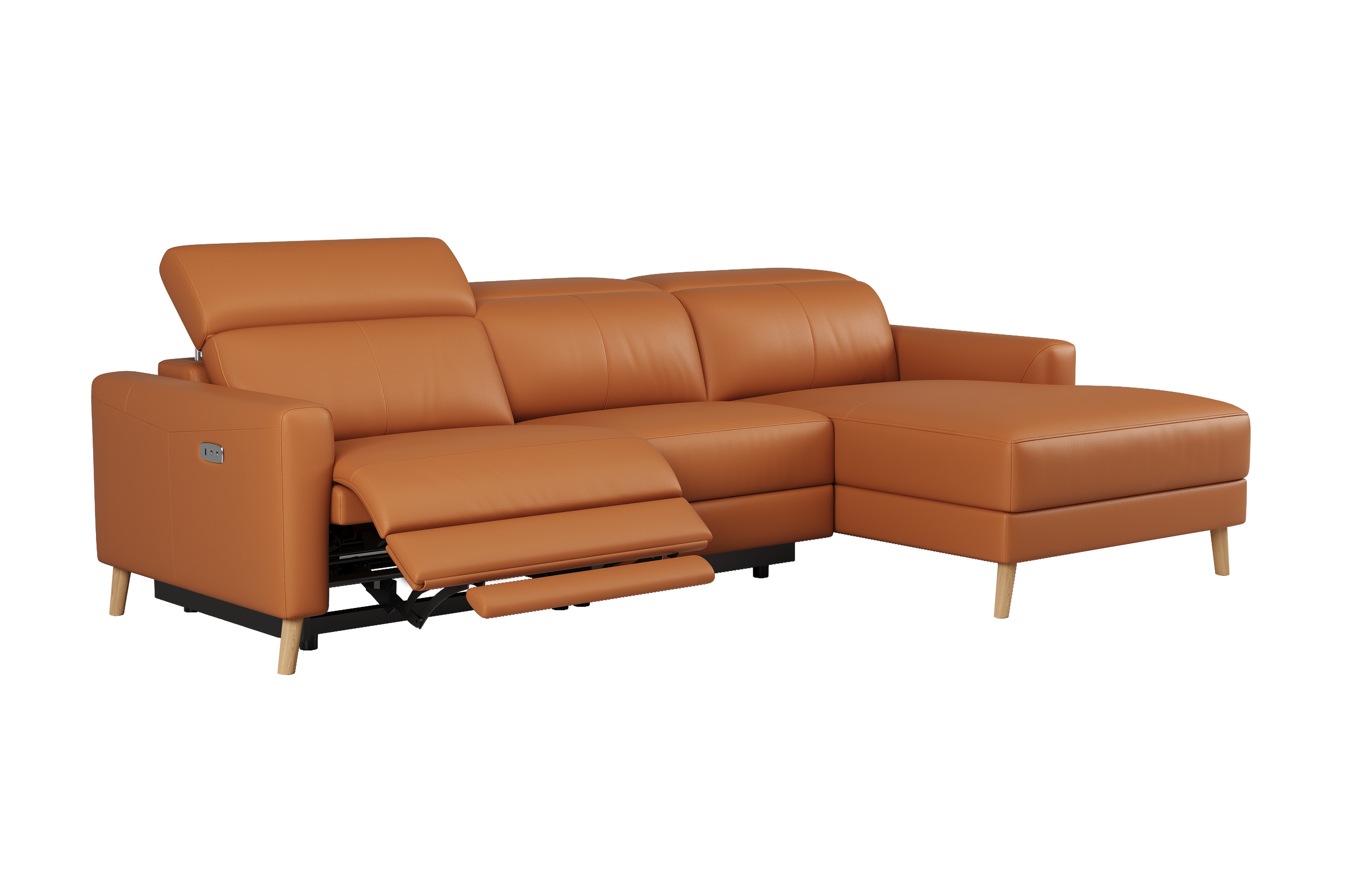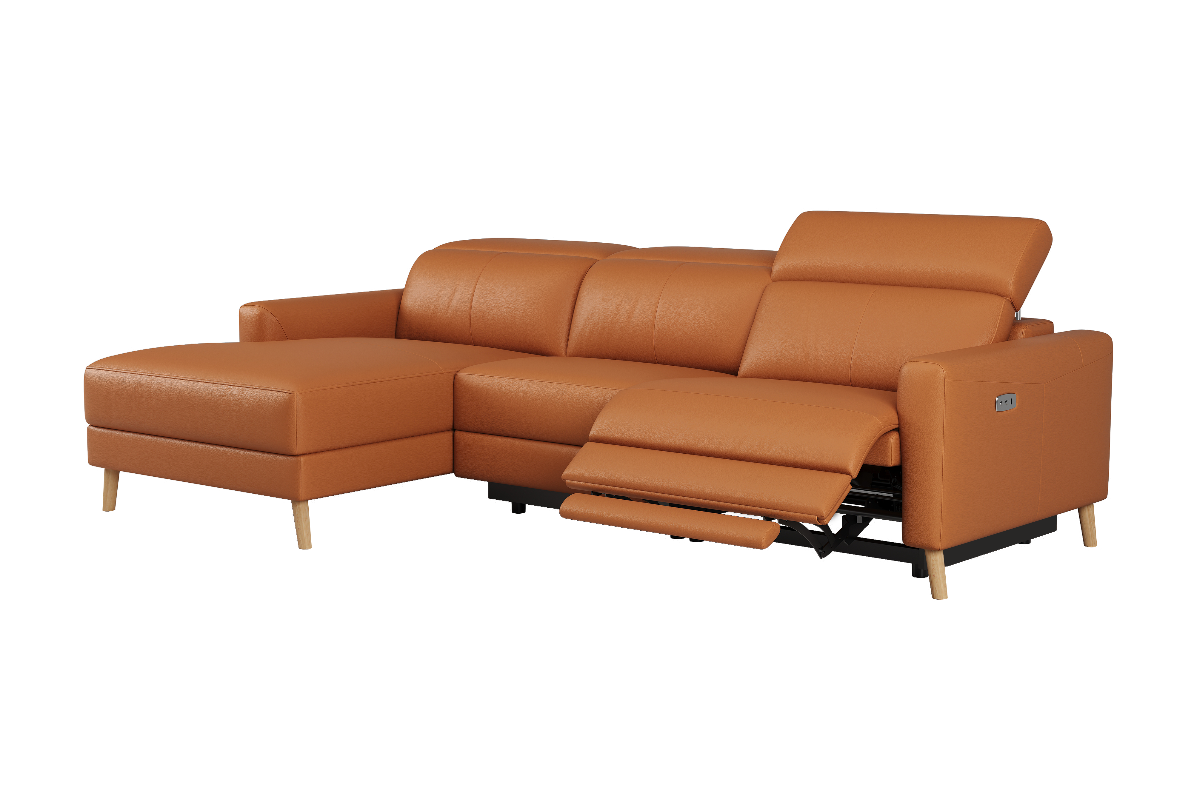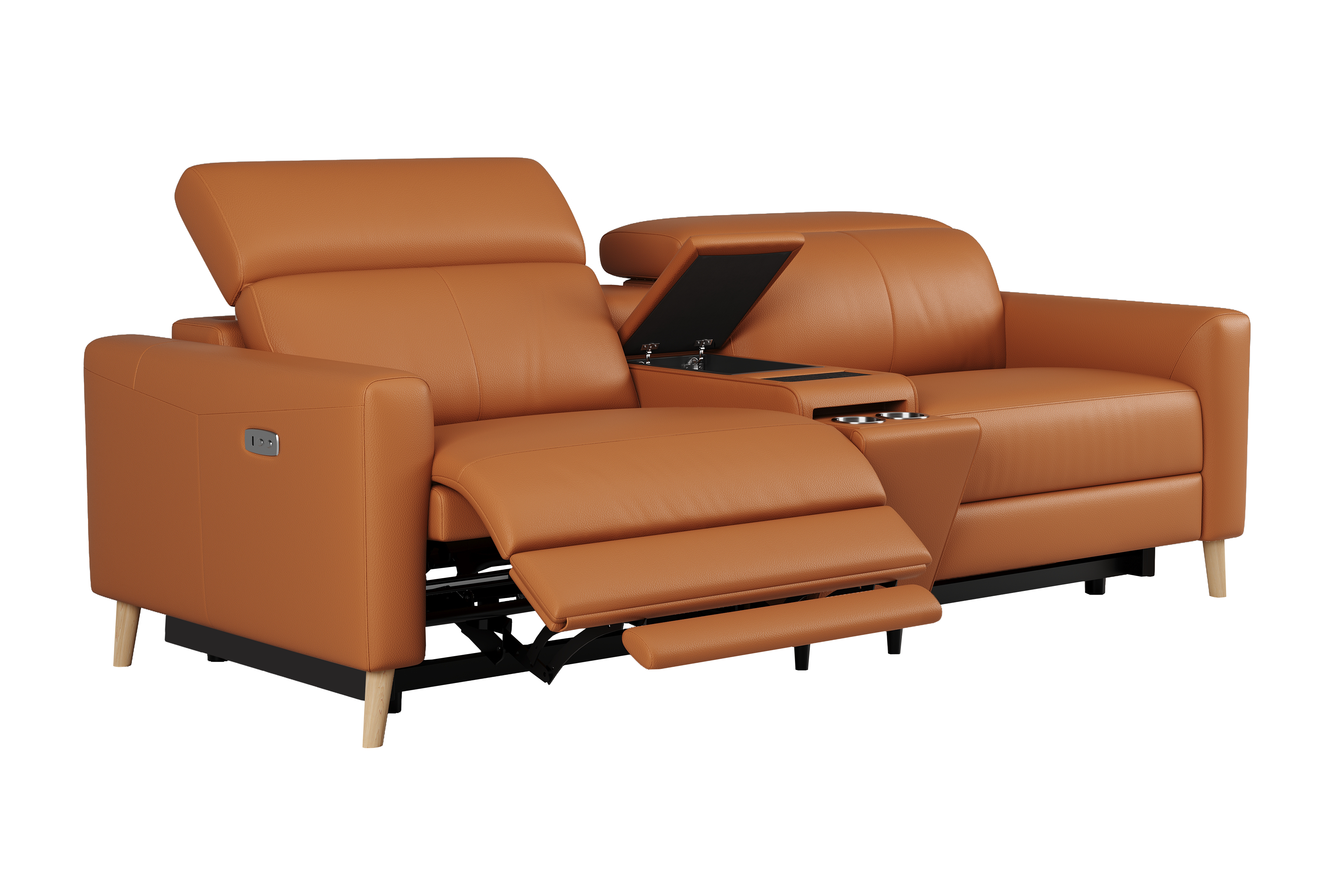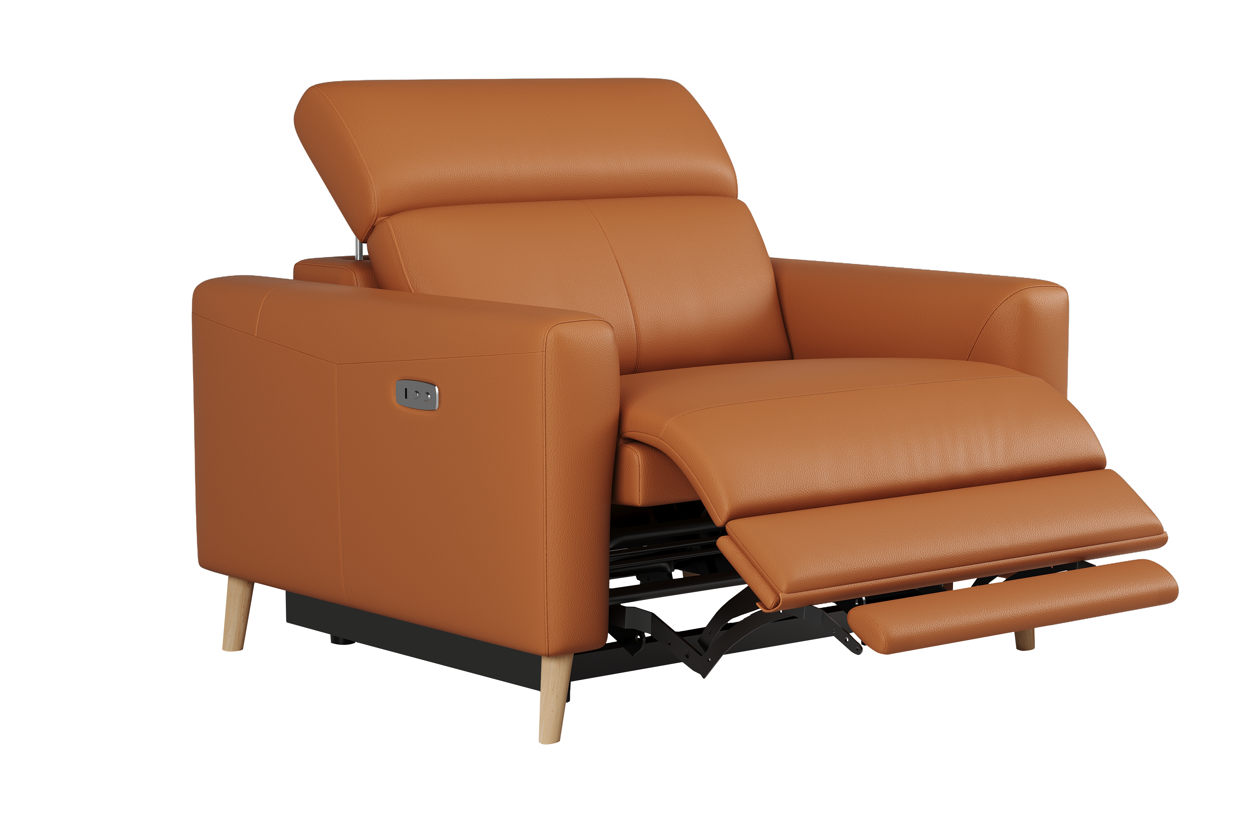 Ozanne features an advanced dual power reclining system, zero-wall space-saving design, and supportive 5-position headrests, all wrapped in Hygge™ leather. Available as a recliner chair, loveseat with console, or chaise sectional.